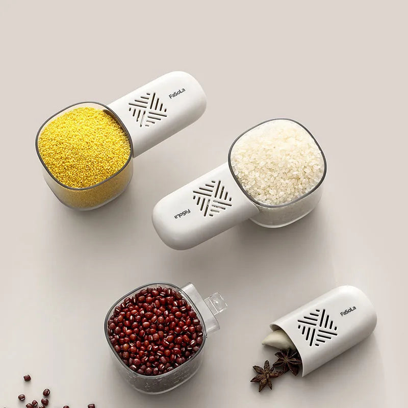 Simplify your cooking with this 2-in-1 scoop rice spoon, designed for measuring and scooping rice, grains, cereals, and more, with an insect-proof feature to keep food safe.