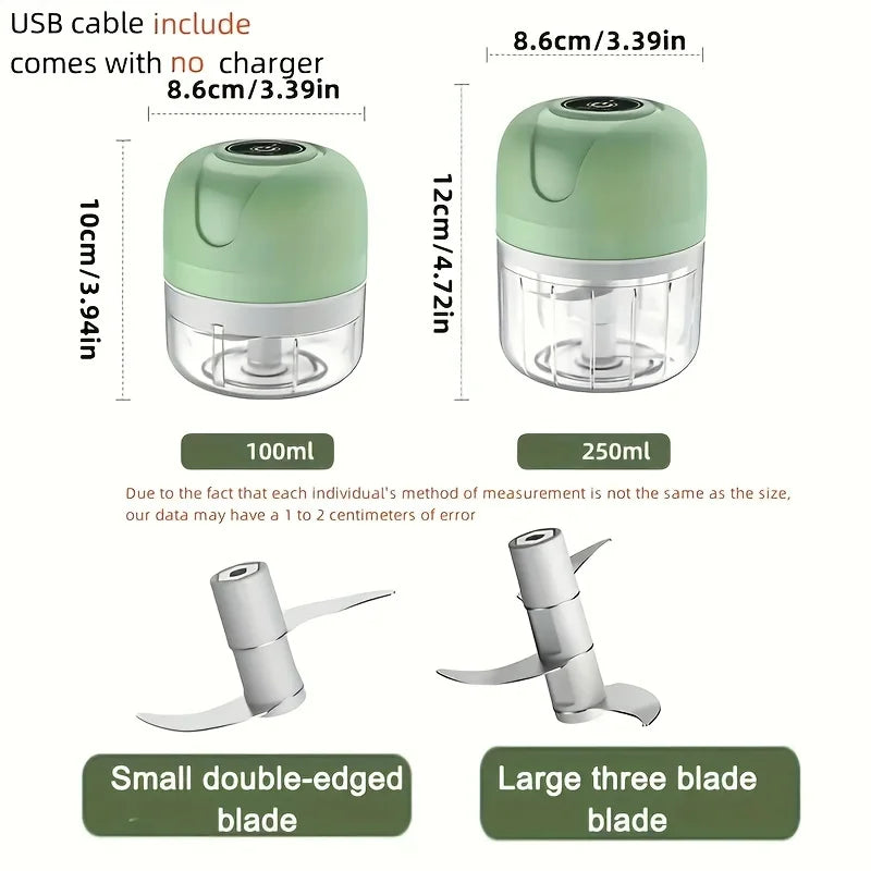 Short Description: Effortlessly chop garlic, onions, and vegetables with this 250ml mini chopper, featuring 3 sharp blades and USB charging for convenience.
