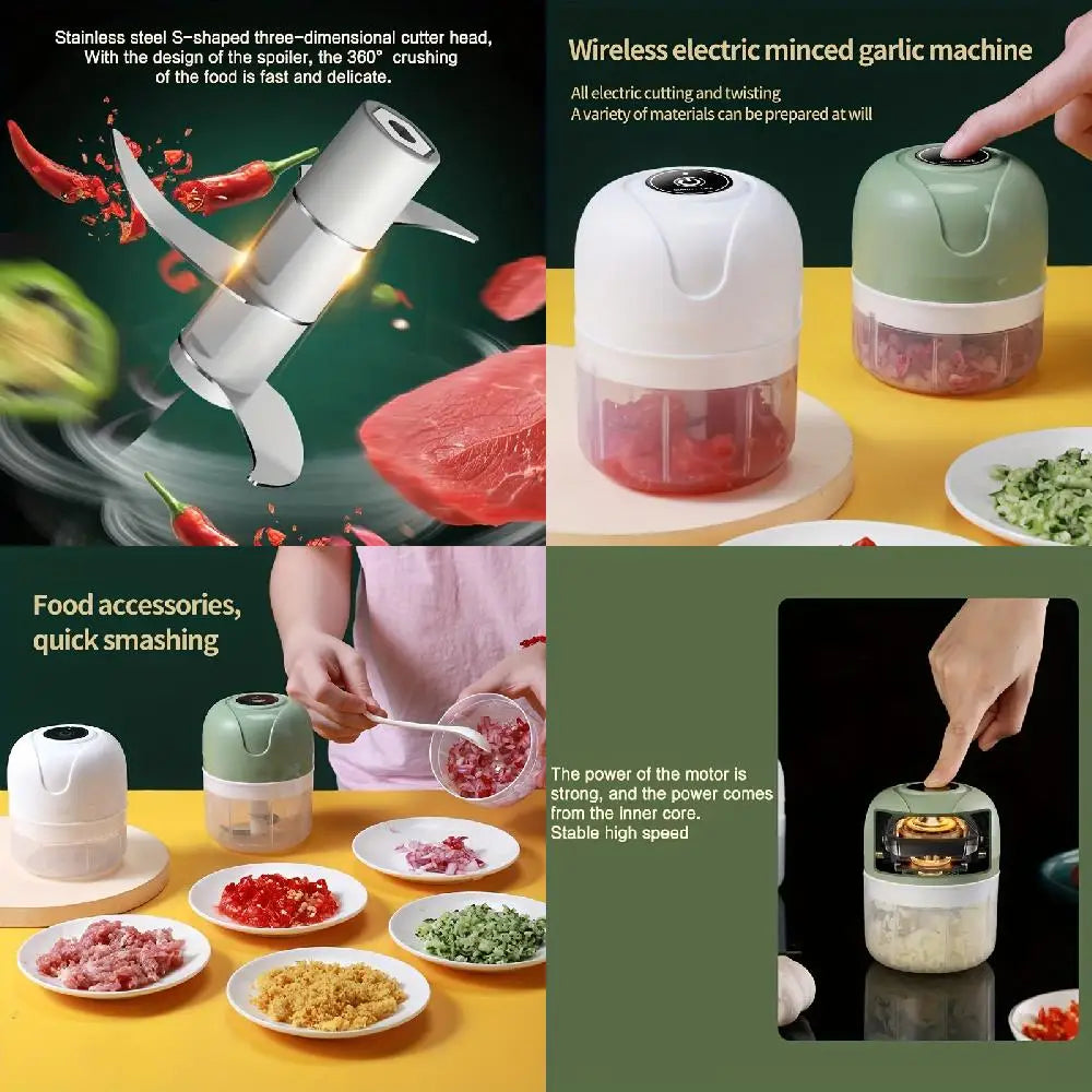 Short Description: Chop garlic, onions, and vegetables effortlessly with this 250ml mini chopper, featuring 3 sharp blades and convenient USB charging.