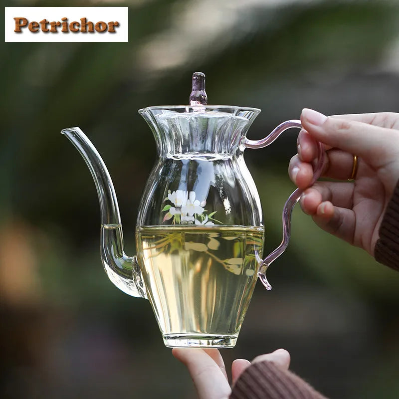 Enhance your tea ceremony with this beautifully crafted glass teapot – the perfect blend of artistry and functionality for any tea enthusiast!
