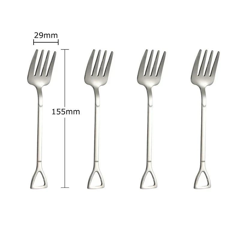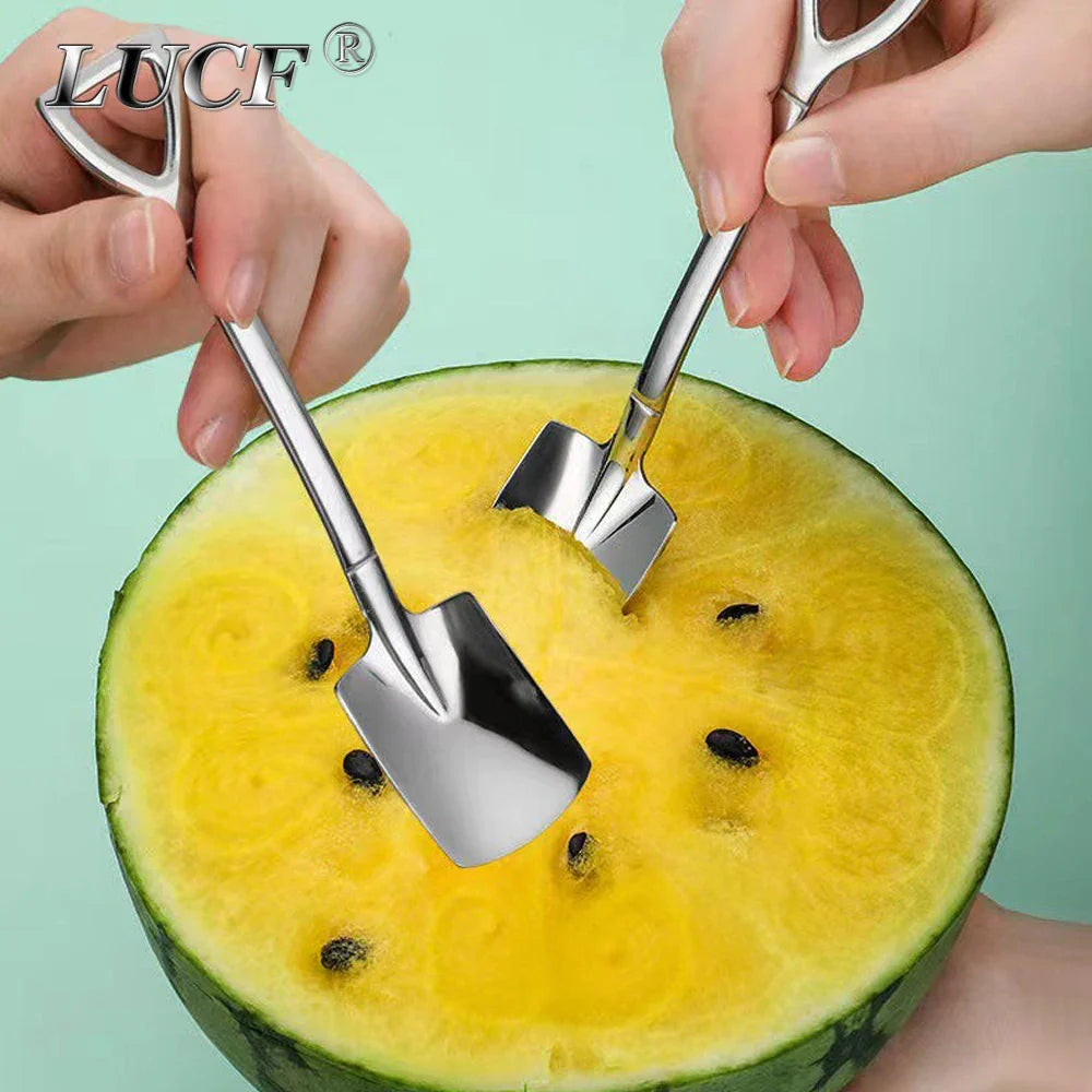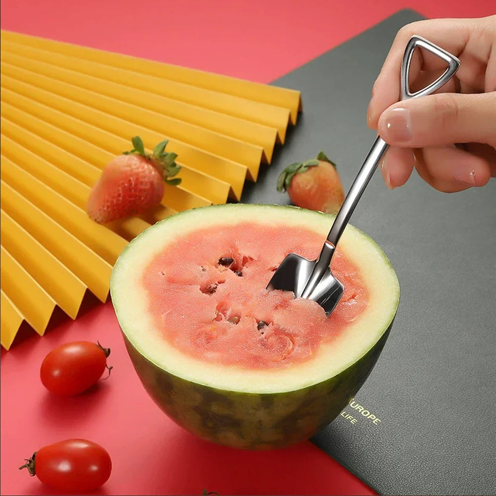 This 4pcs Combo Set includes creative dessert spoons, melon scoops, and fruit forks made of durable 18/10 stainless steel. Perfect for serving ice cream, fruit, and desserts with a cute and functional design.
