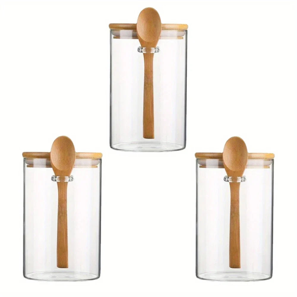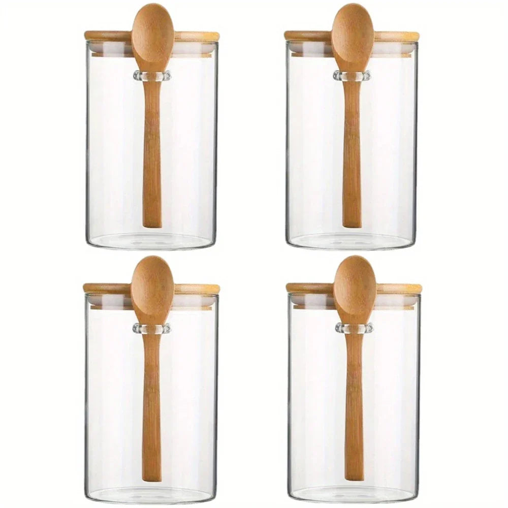 Organize your spices, beans, tea, and more with the Airtight Glass Jars — featuring bamboo lids and spoons for convenient, stylish storage, available in sets of 1, 2, 3, or 4 jars.