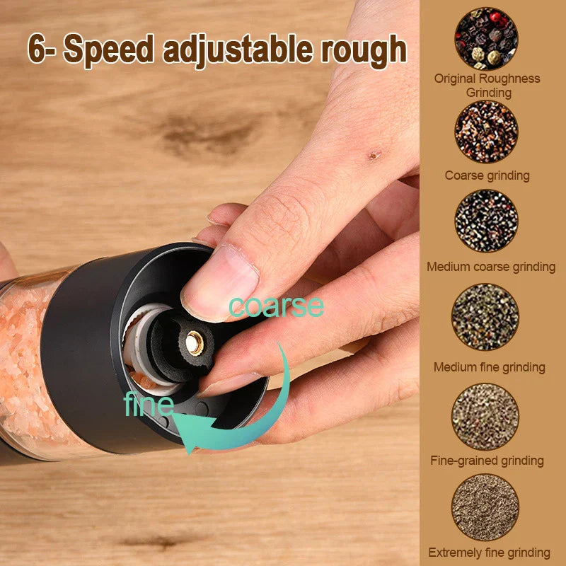 Adjustable coarseness: Customize the grind from fine to coarse for perfect seasoning