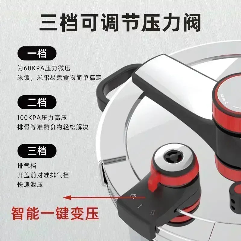 Short Description: Cook meals faster and more efficiently with this large-capacity, explosion-proof pressure cooker made from high-quality 304 stainless steel, perfect for home kitchens.