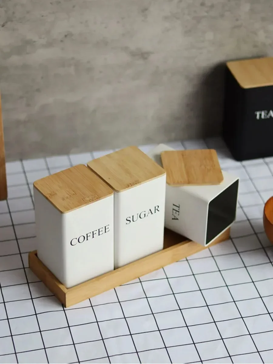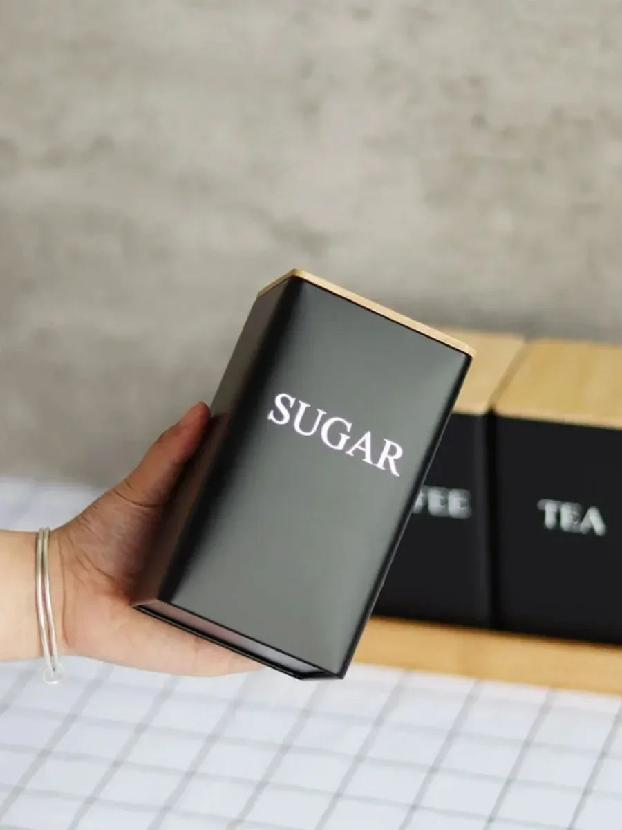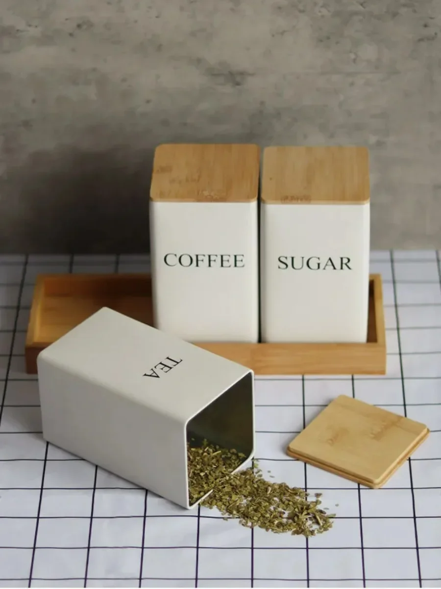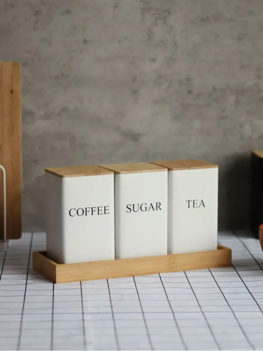 Elevate your kitchen storage with the 3Pcs/Set Tea Box Storage Tanks — a practical and chic solution for organizing your tea, coffee, and sugar!