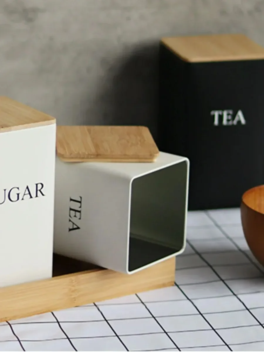 This 3Pcs/Set Tea Box Storage Tanks are perfect for organizing your tea, coffee beans, and sugar. With durable metal containers and bamboo lids, they offer a stylish and practical solution for keeping your kitchen essentials fresh and neatly stored.