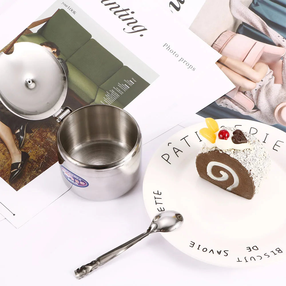 Keep your kitchen organized with this mini stainless steel storage pot, perfect for salt, sauces, jam, tea, or coffee. Comes with a lid and spoon for easy dispensing and stylish storage.