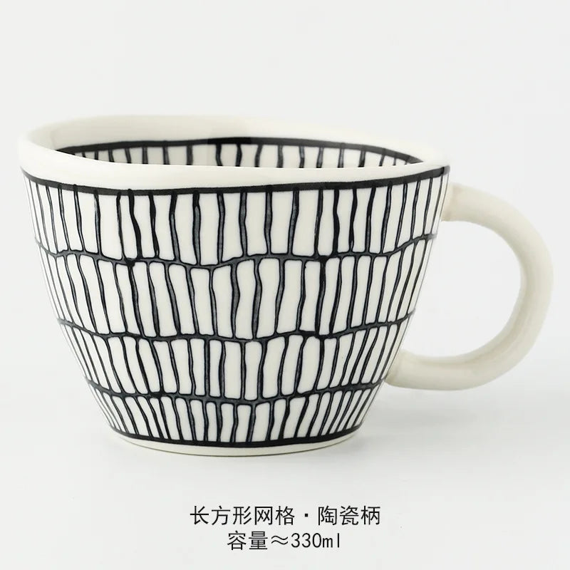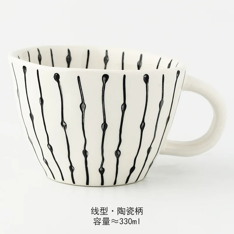 This Nordic Hand-Painted Ceramic Coffee Cup features a unique, irregular design and large capacity, making it perfect for enjoying your morning coffee, tea, or any beverage. A stylish addition to your kitchen or office.