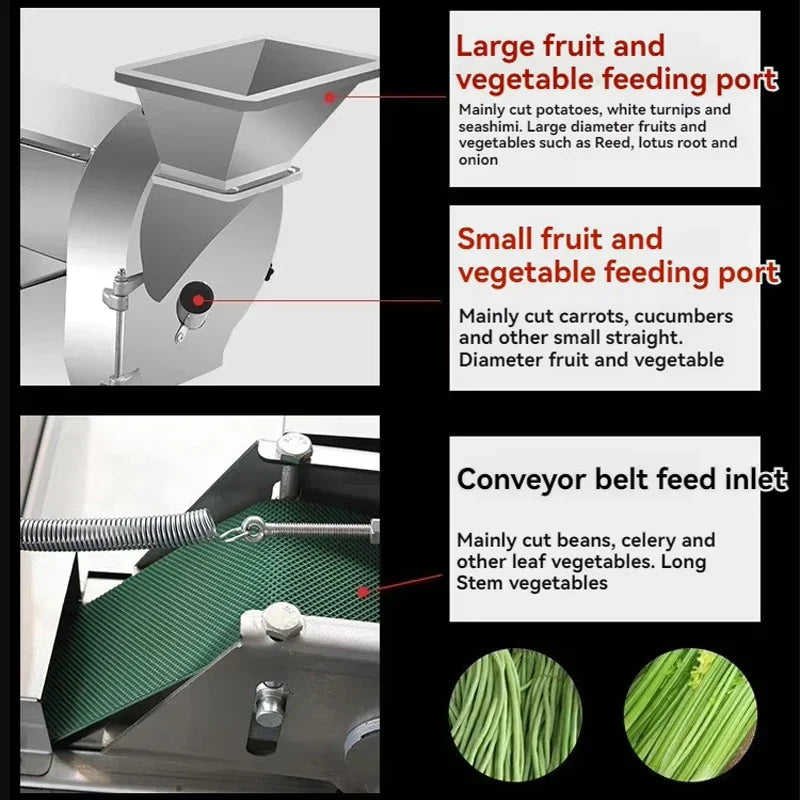 The machines shown in the figure below are different types of vegetable cutters. If you are interested, you can click the red button below to learn more information.