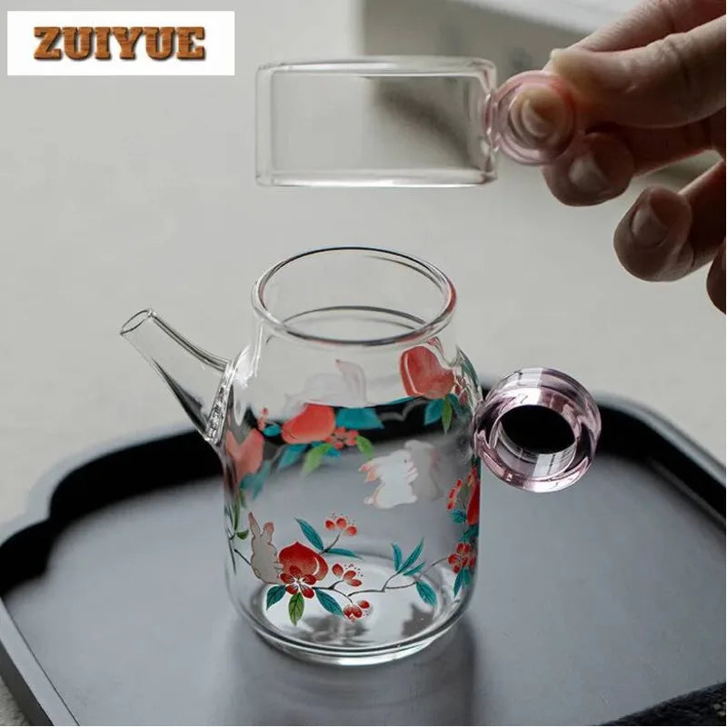120ml High Borosilicate Glass Rabbit Longevity Peach Ring Teapot