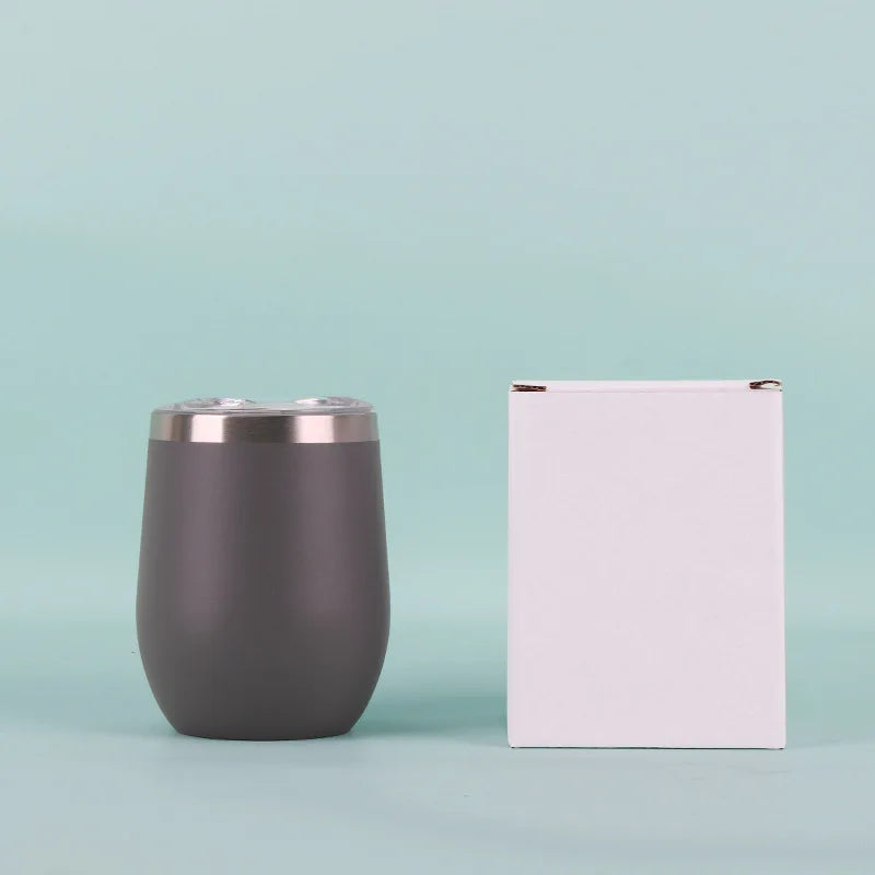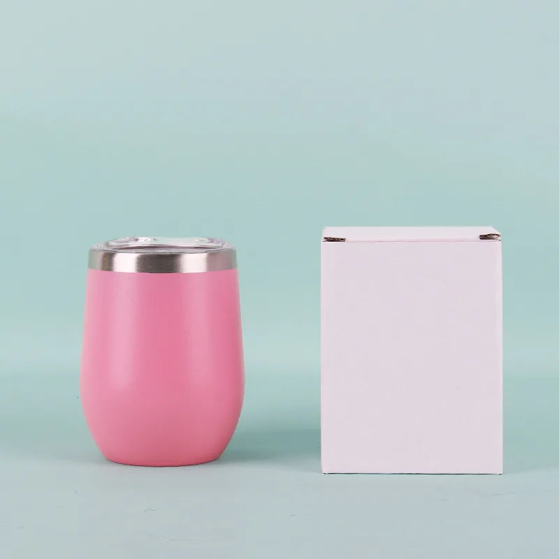Elevate your beverage experience with these custom 12oz double-wall stainless steel wine tumblers. Featuring an insulated vacuum design and sliding lids, they keep your drinks at the perfect temperature while offering a sleek, egg-shaped design.