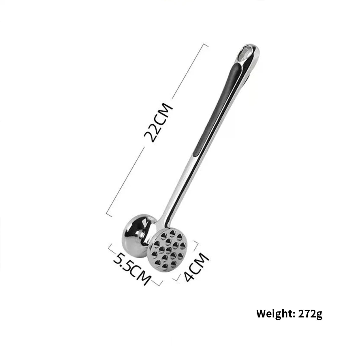 Dual-Sided Hammer: Flat side for general tenderizing, textured side for loosening and fluffing minced meat