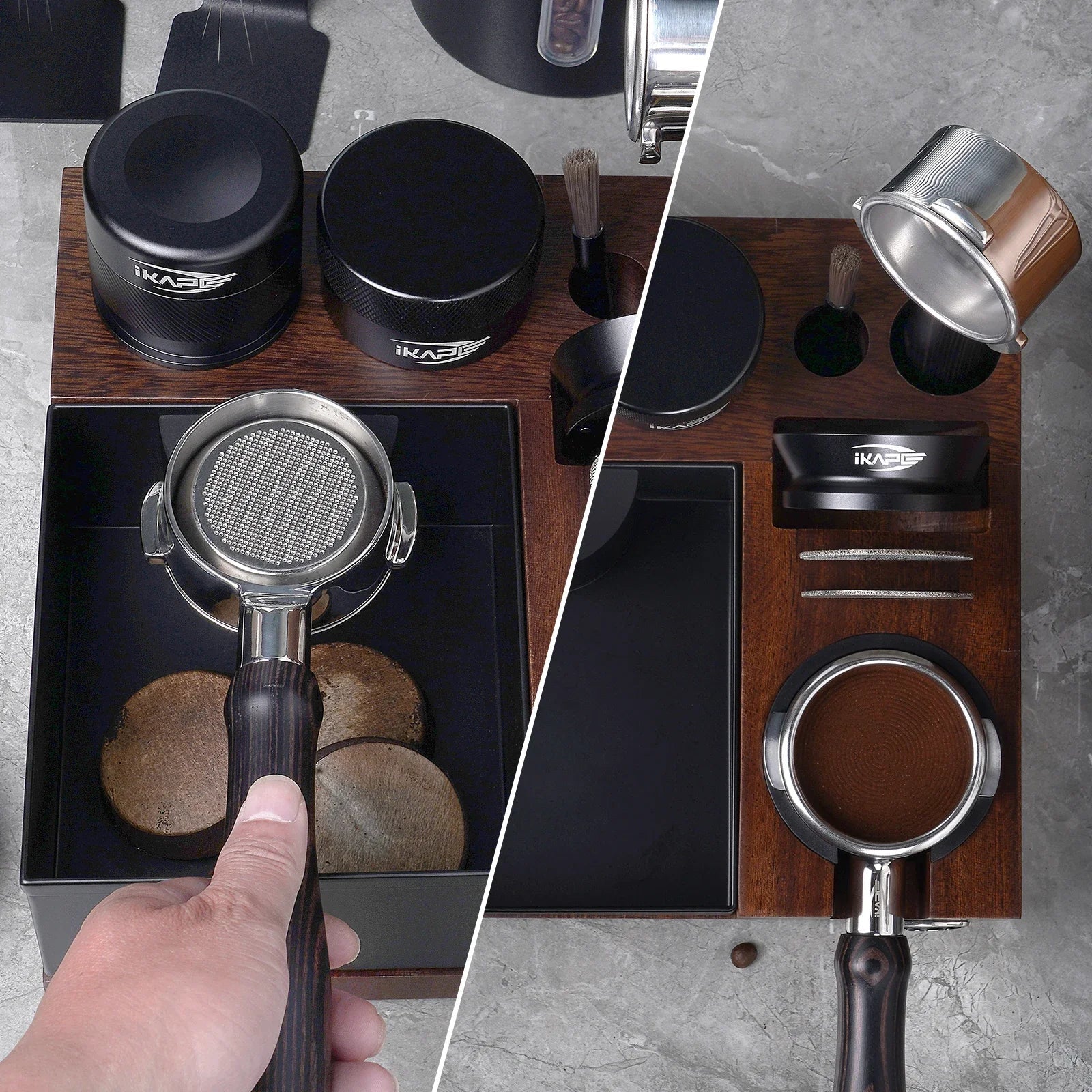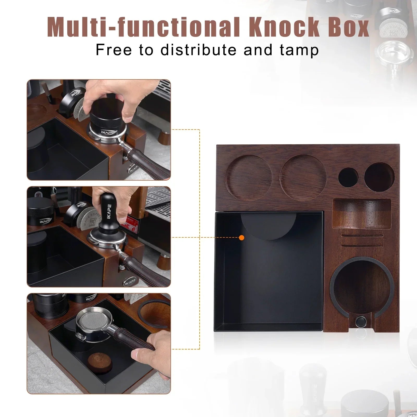 Organize your espresso tools with the IKAPE V5 Espresso Knock Box. Designed to fit your tamper, distributor, portafilter, and puck screen, this professional organizer ensures a clean and efficient workspace for every coffee enthusiast.