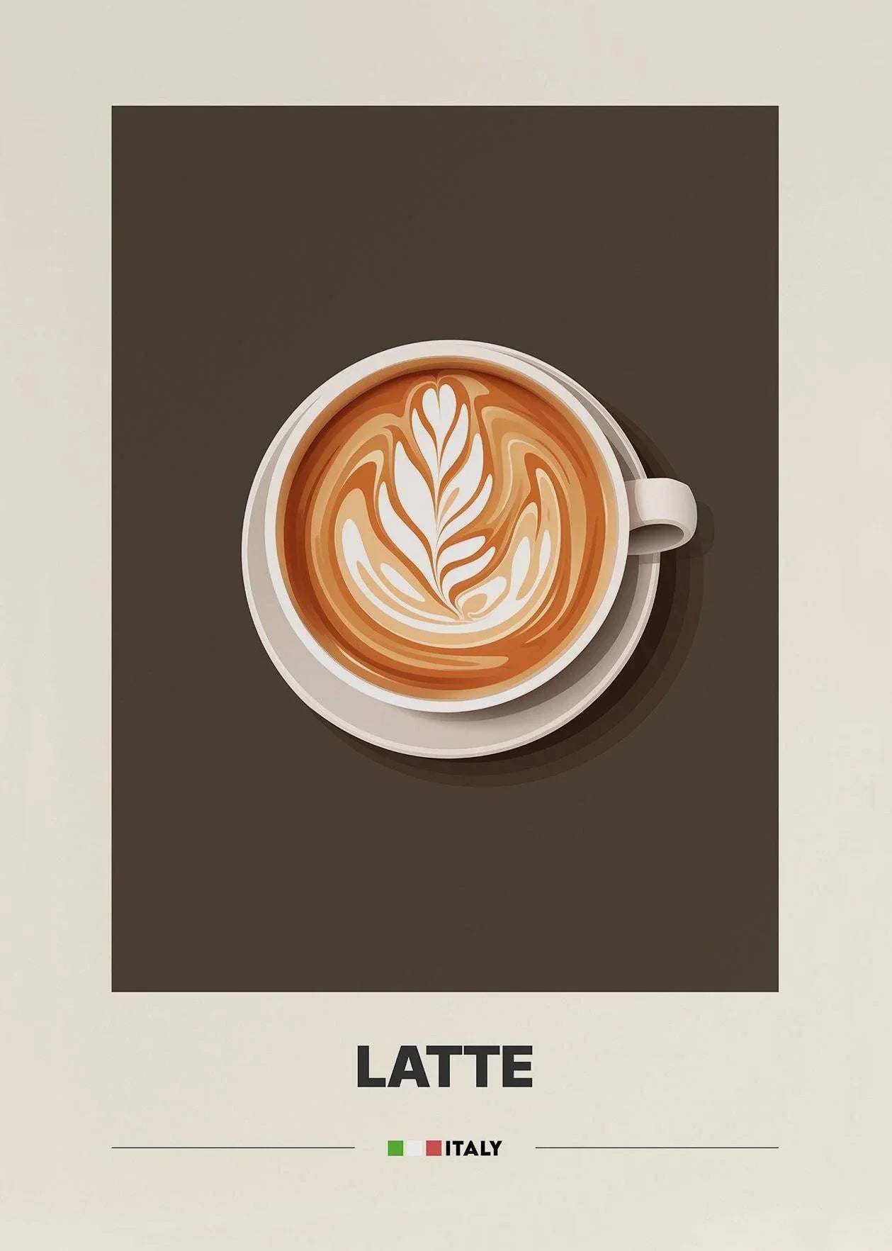 Minimalist Coffee Art Poster – Latte, Cappuccino, Mocha