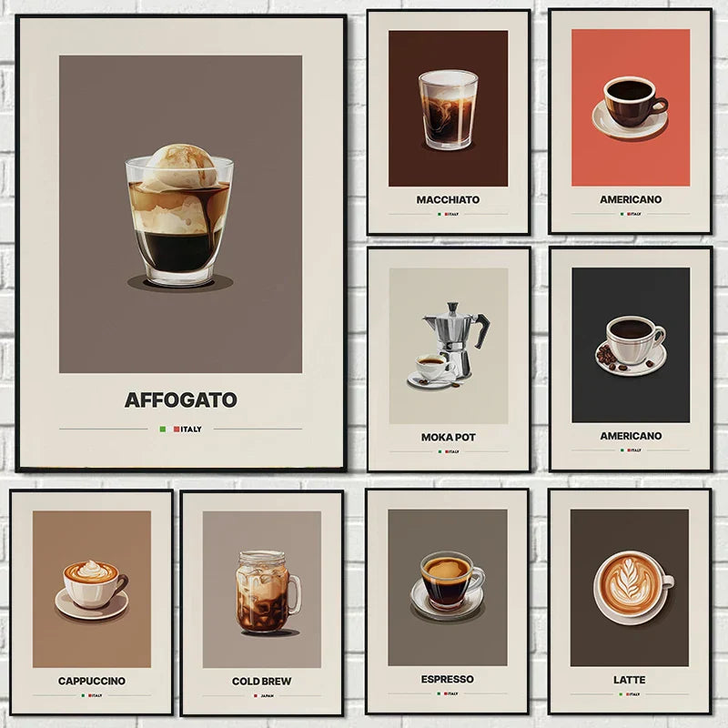 Enhance your space with this minimalist coffee art poster, perfect for coffee lovers. Featuring latte, cappuccino, and mocha designs, this retro-style canvas painting adds a cozy, stylish touch to any coffee shop or home decor.