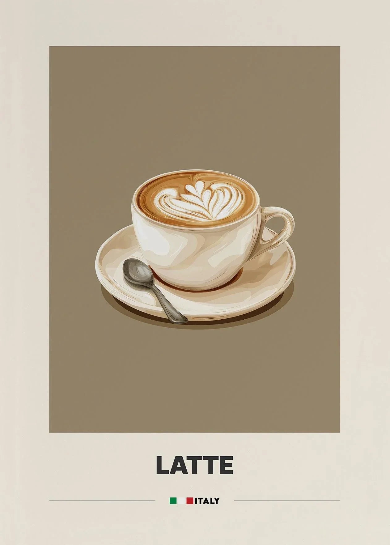 Add a touch of elegance and warmth to your home or coffee shop with this beautiful coffee art poster!