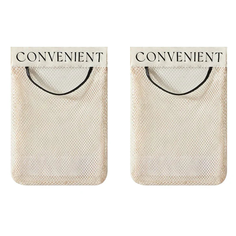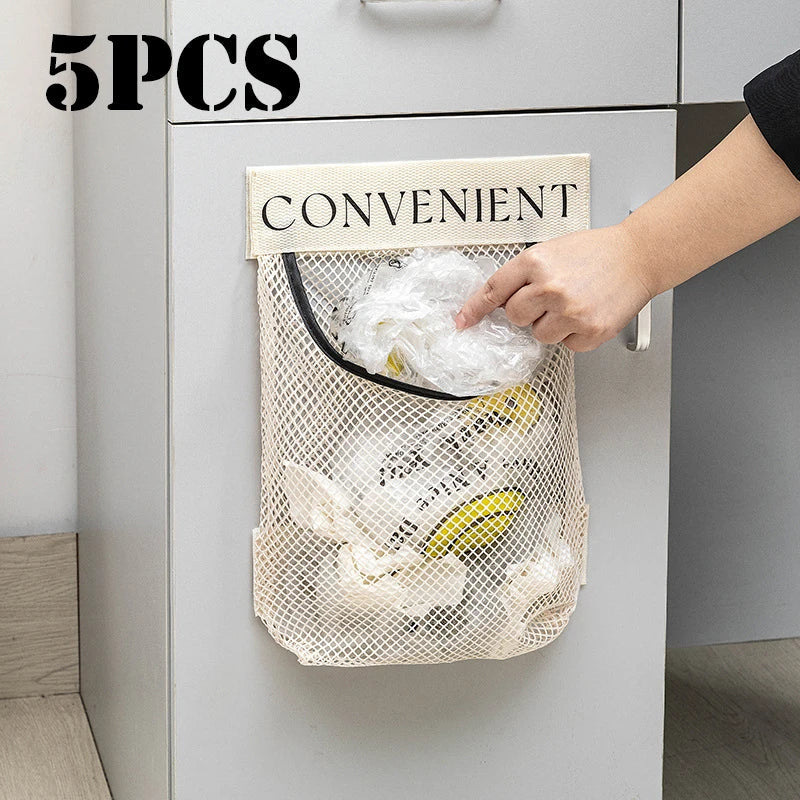 This Plastic Bag Holder & Garbage Bag Organizer is the perfect solution for organizing and storing plastic bags in your kitchen. It features an elastic mesh design and can be hung on doors for easy access and convenience.