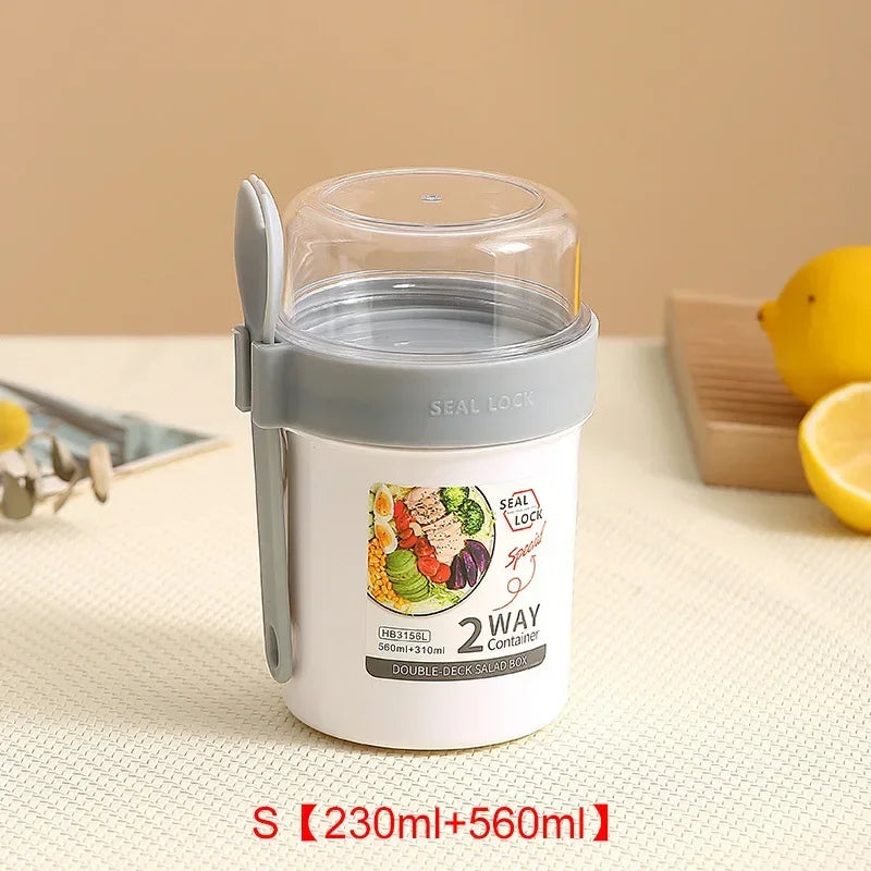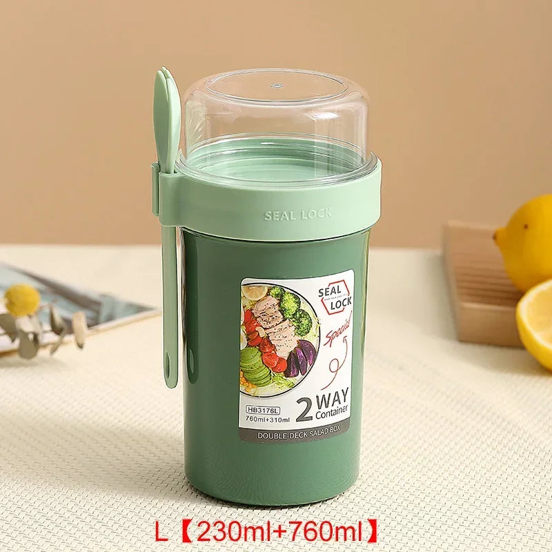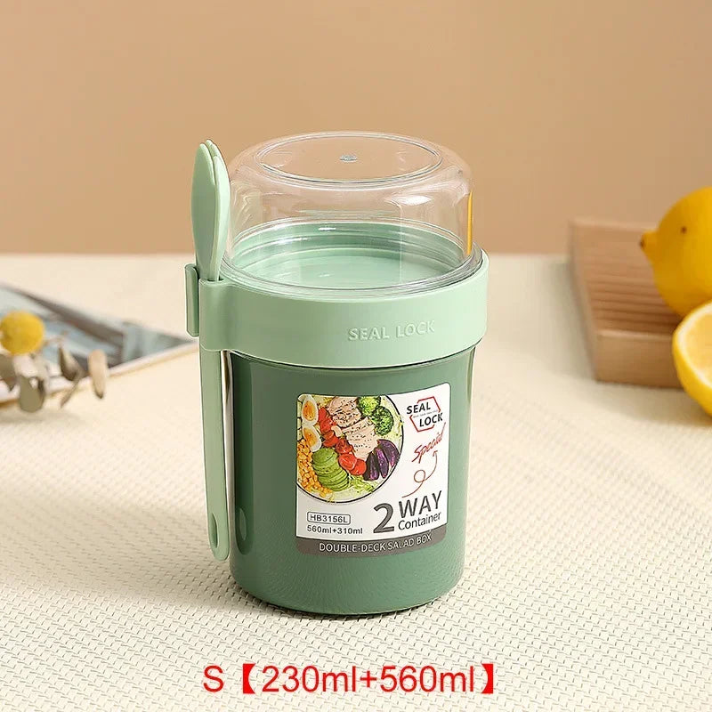 Short Description: Convenient, on-the-go container for salads, oatmeal, yogurt, and more, with a lid and fork for easy meals anywhere.