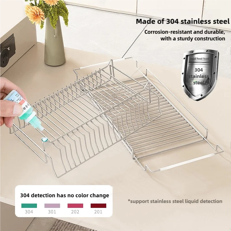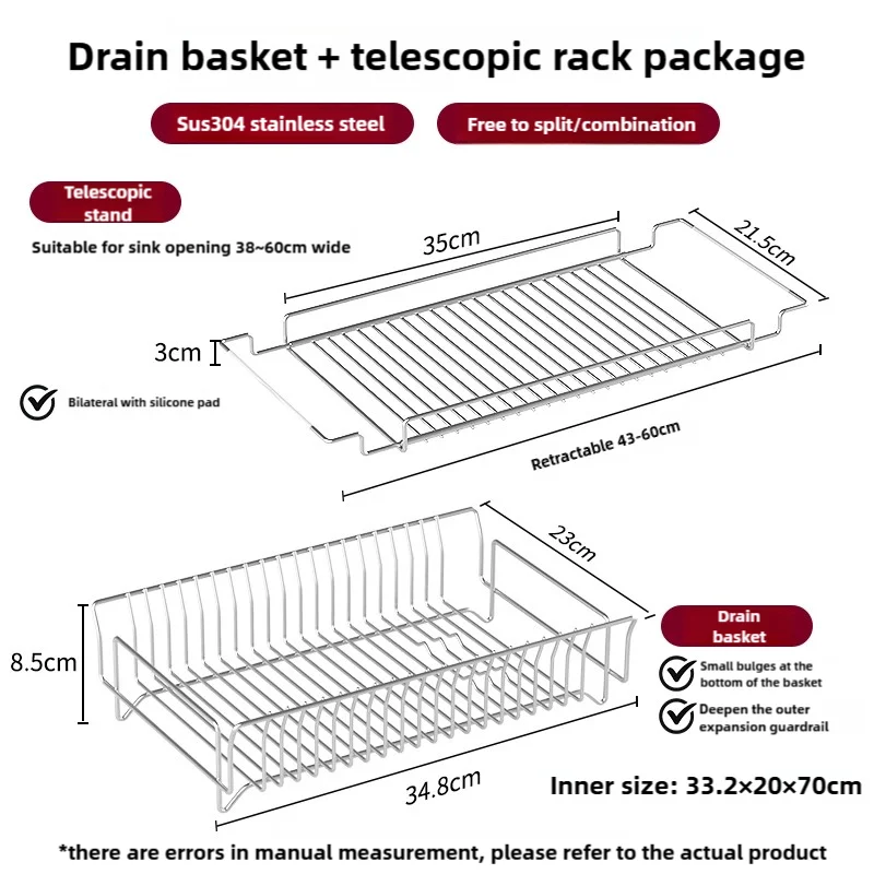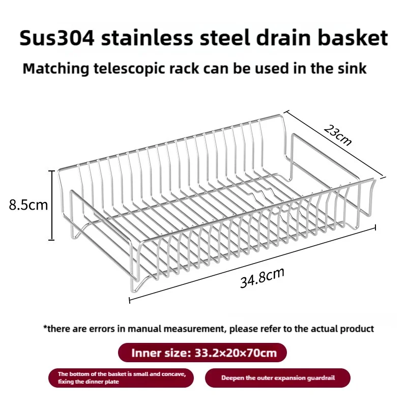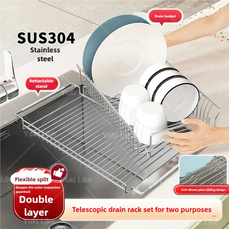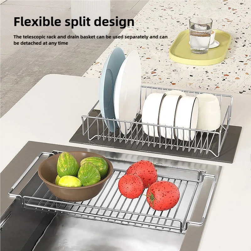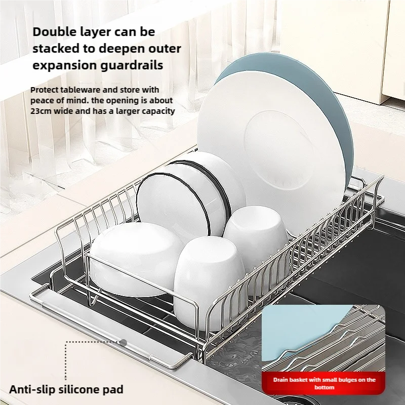 This expandable stainless steel kitchen drainer basket is perfect for dishwashing, providing extra space for drying dishes while keeping your countertop organized.