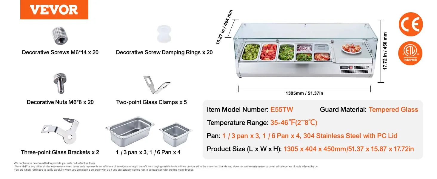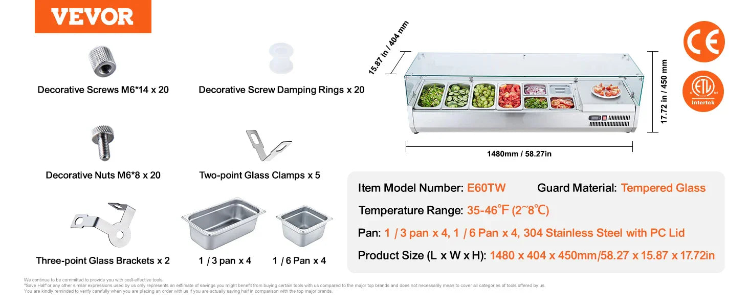 Streamline your kitchen prep with the SucceBuy Refrigerated Condiment Prep Station. This compact sandwich prep table features a durable 304 stainless steel body, PC lid, and a glass guard, ensuring your condiments are fresh and easily accessible.
