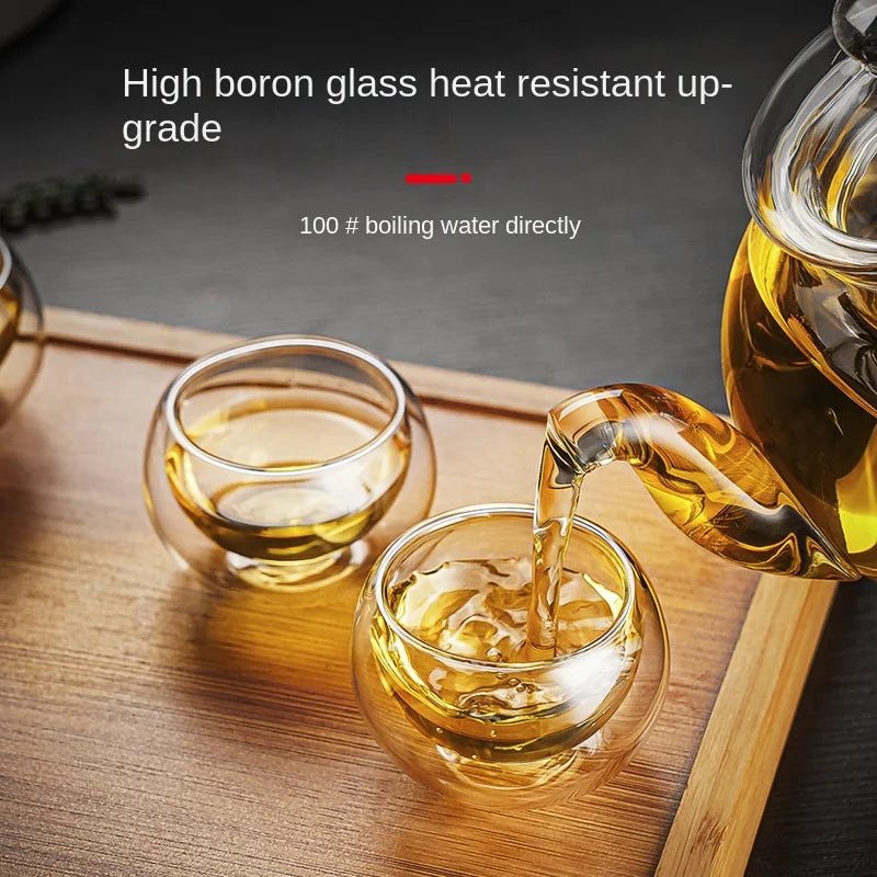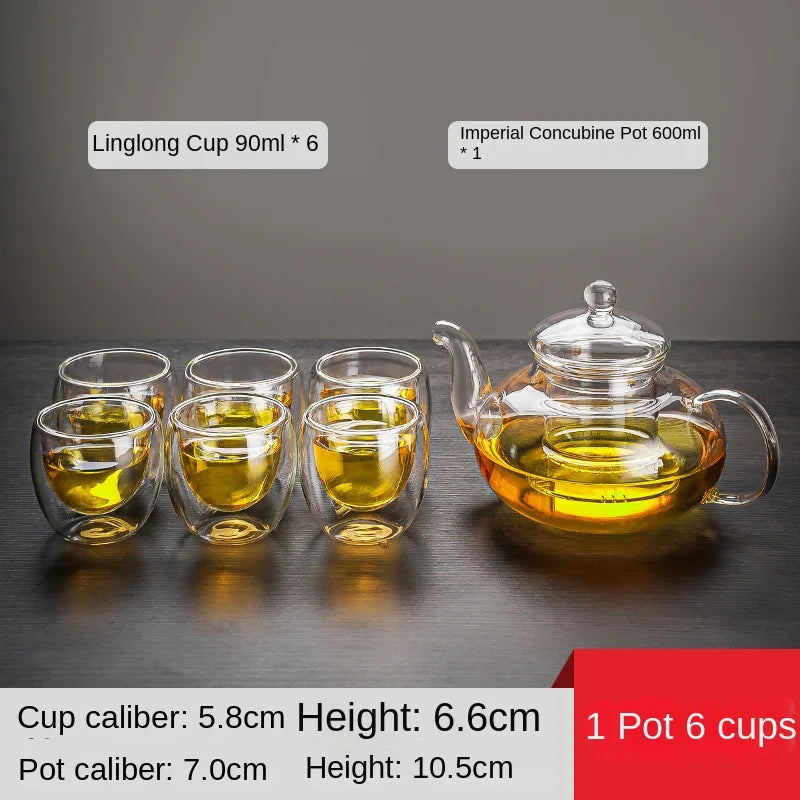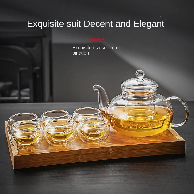 This elegant high borosilicate glass teapot is perfect for brewing and serving tea. With an anti-scald insulation design, it ensures safe handling while the flower-shaped design adds a touch of beauty to your tea time.