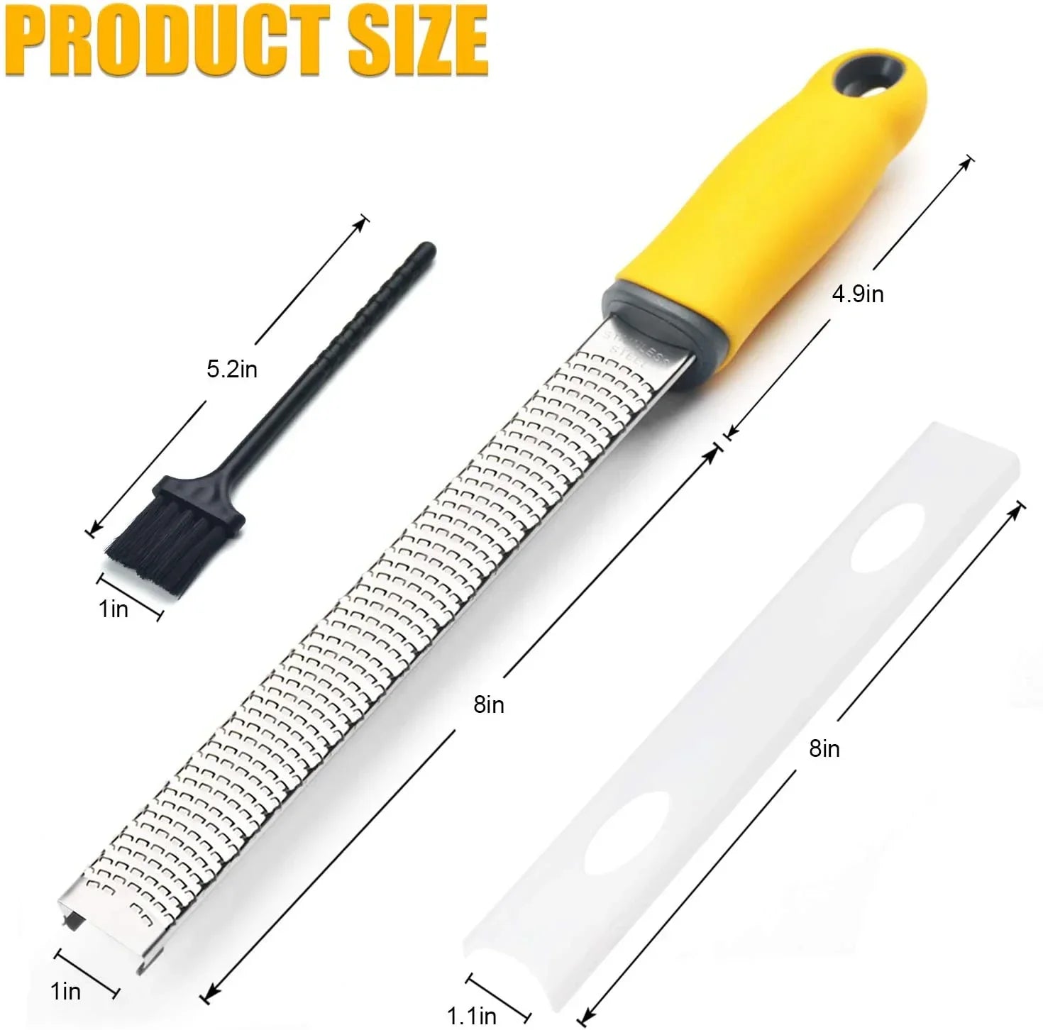 Short Description: Enhance your kitchen tools with this sharp, stainless steel lemon zester and cheese grater, designed with a non-slip handle for easy, precise zesting and grating.