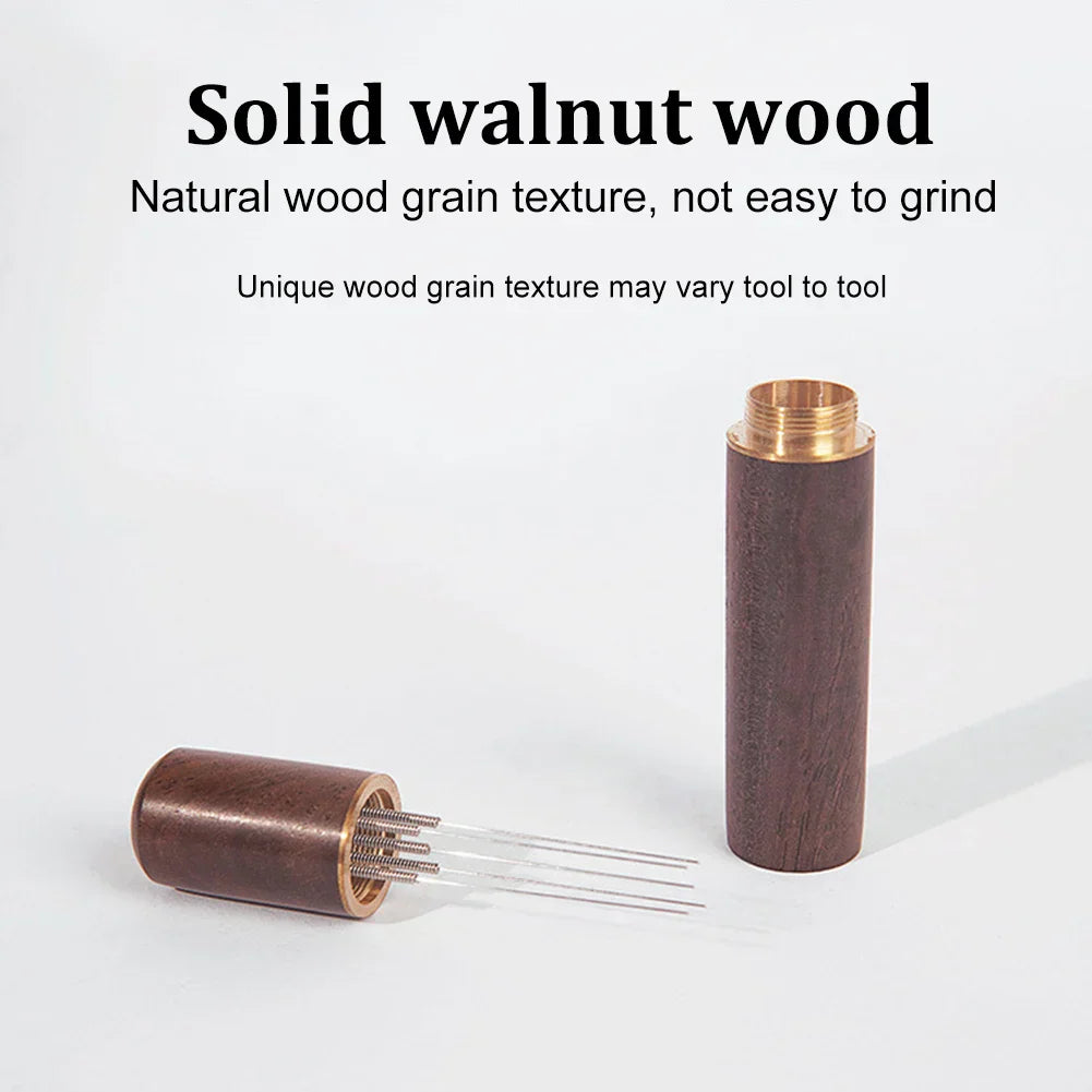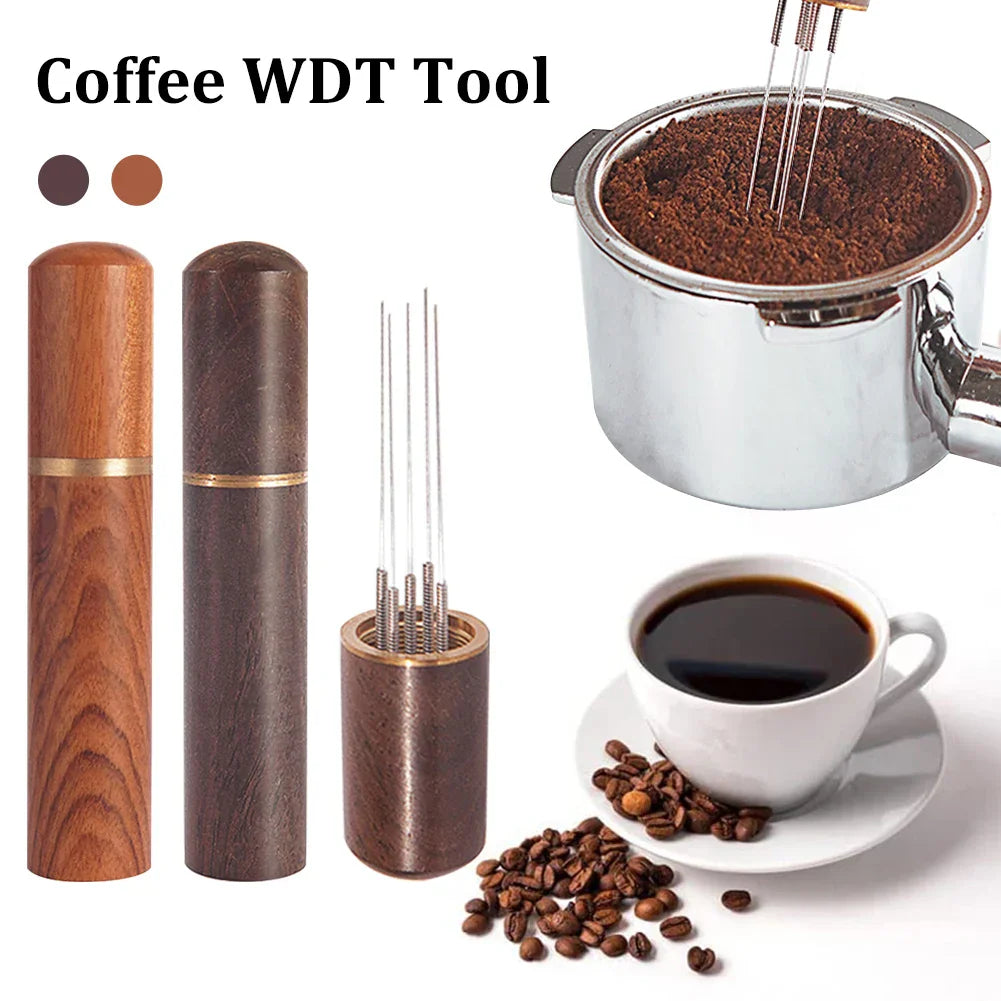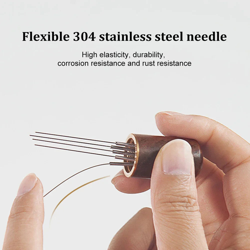 Perfect your espresso brewing with this professional WDT tool. Featuring 5 precision needles and a self-aligning stand, it ensures uniform coffee ground distribution for a smoother, more consistent extraction every time.