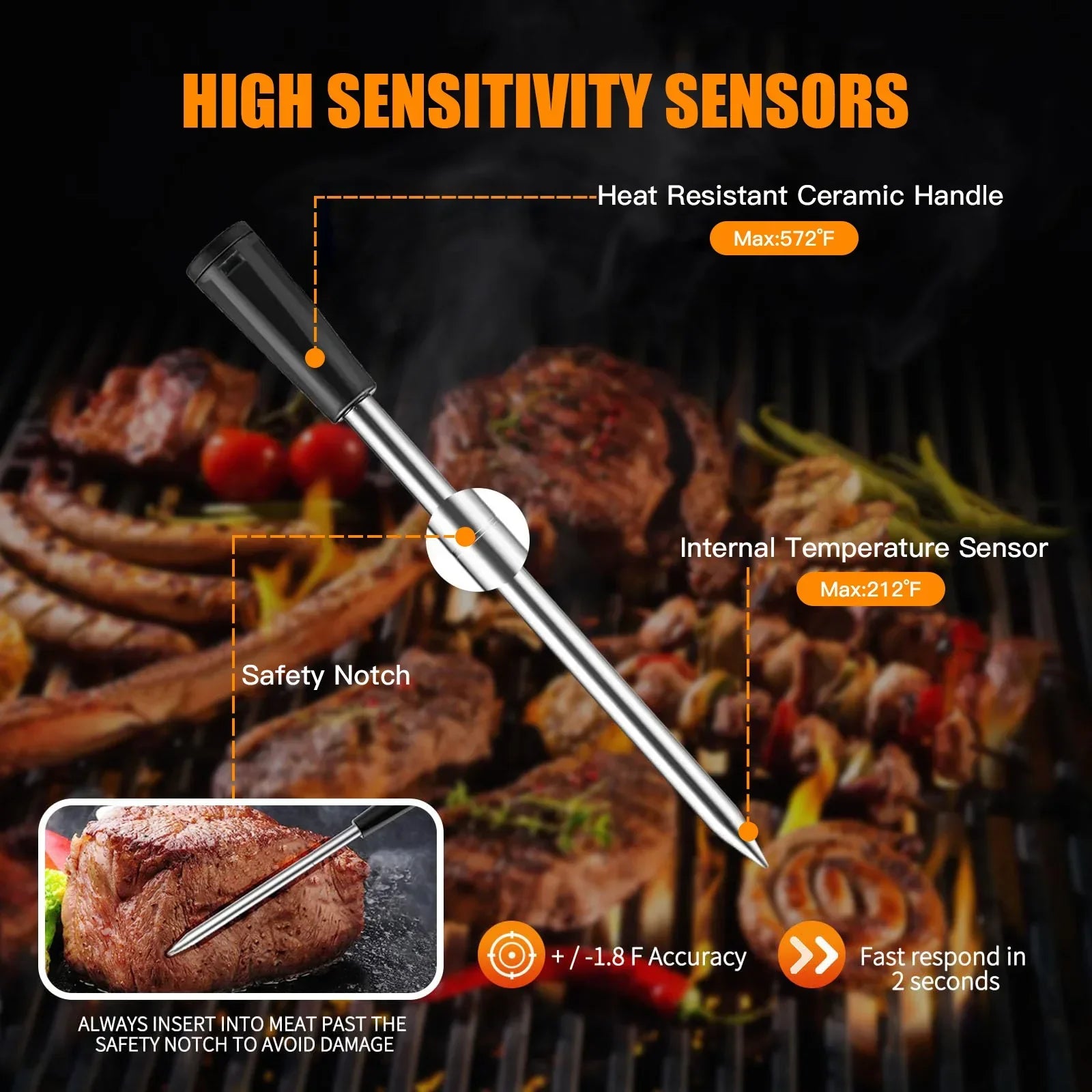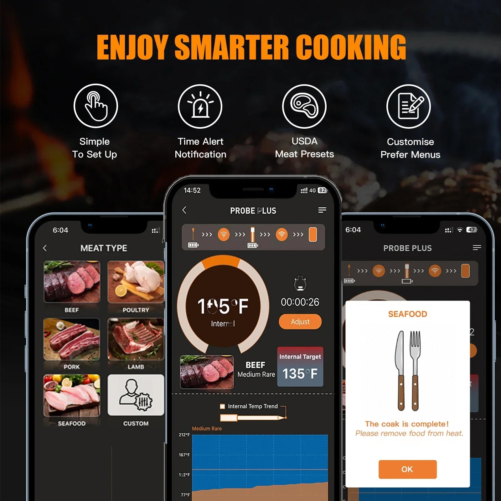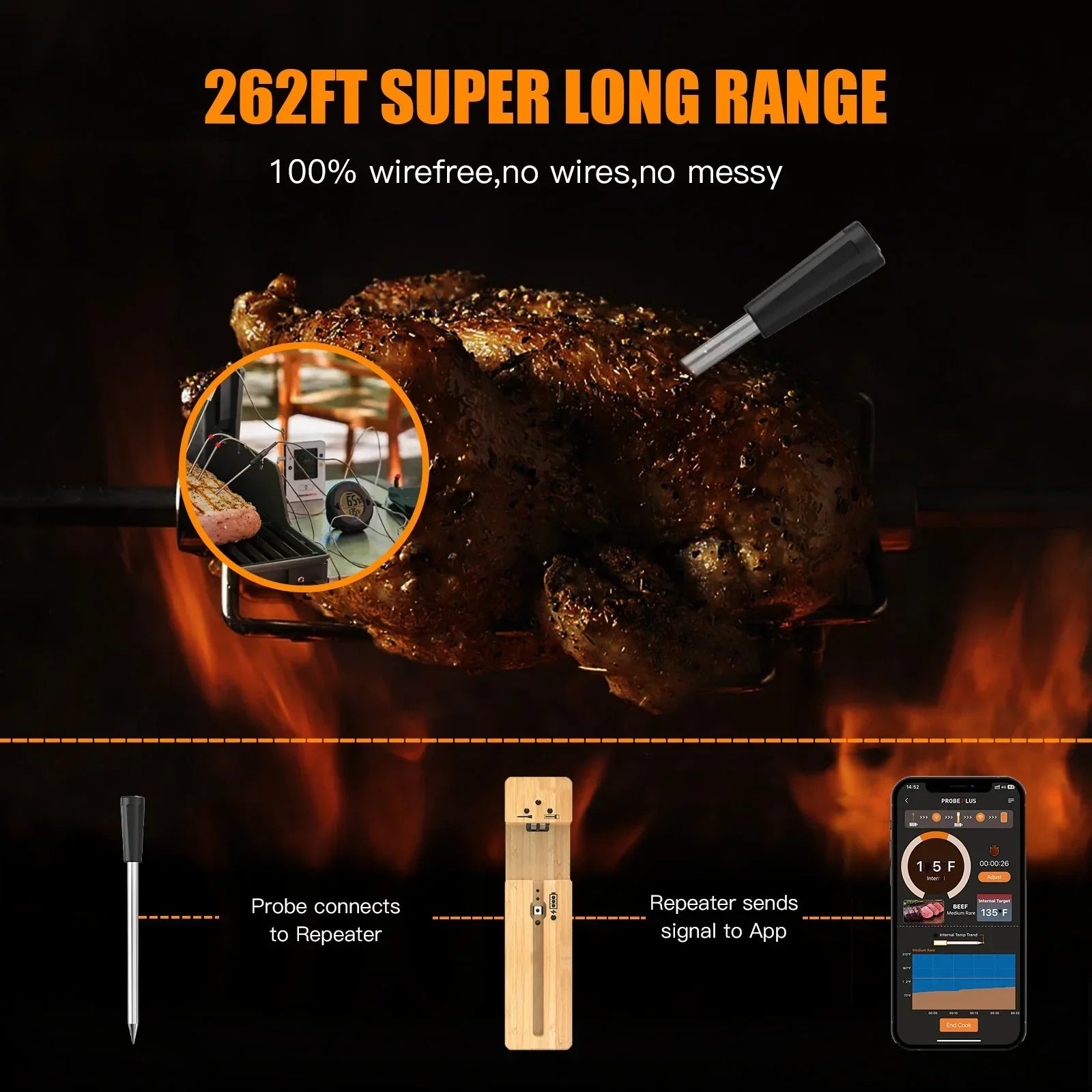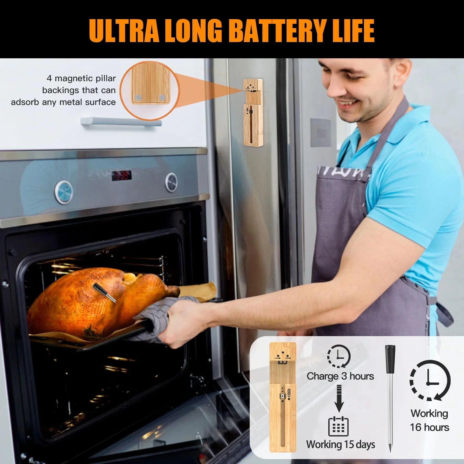 Perfect your cooking with the WENMEICE Wireless Meat Thermometer. This smart Bluetooth device monitors your food's temperature remotely for perfect results every time.