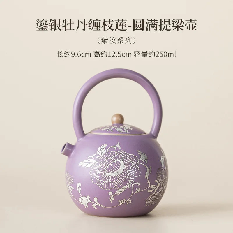 250ML Purple Ru Porcelain Gild Silver Peony Teapot