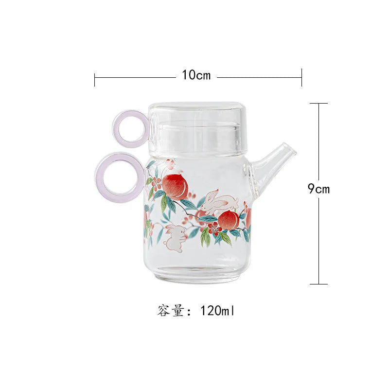 120ml High Borosilicate Glass Rabbit Longevity Peach Ring Teapot