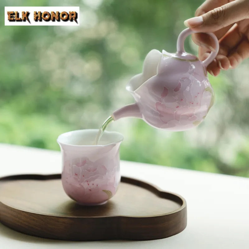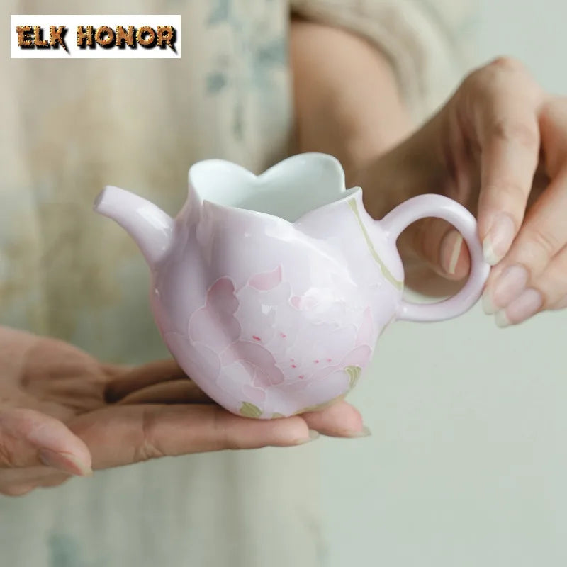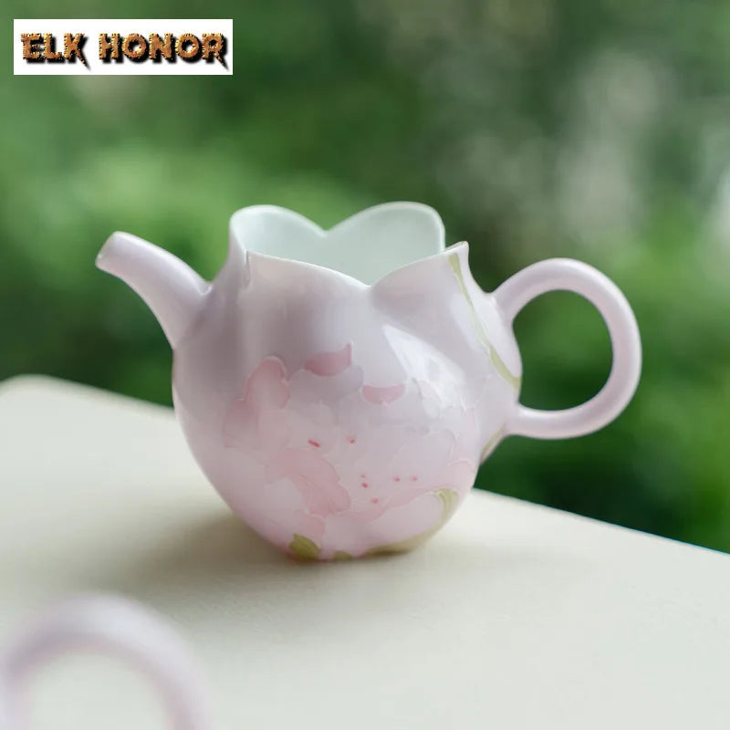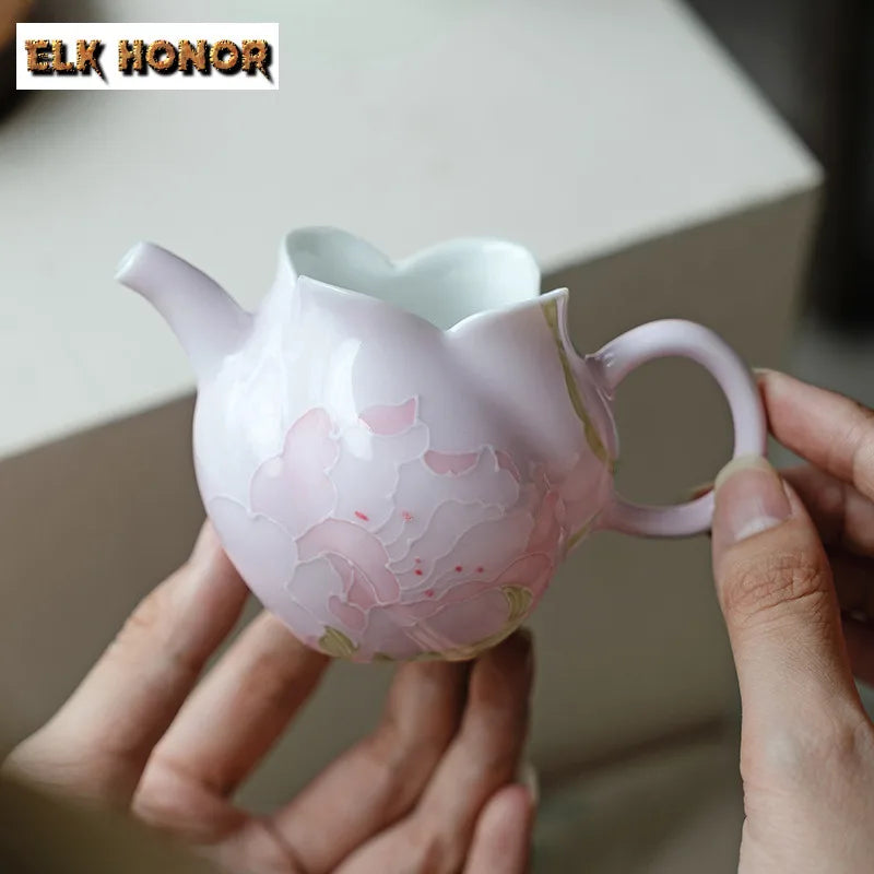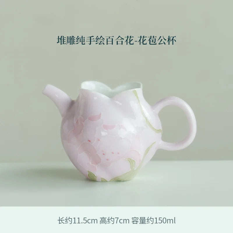 This beautifully crafted 150ml tea pitcher features hand-painted lily flower designs. Ideal for tea ceremonies, it serves as a perfect dispenser or cha hai for tea lovers, offering elegance and functionality.