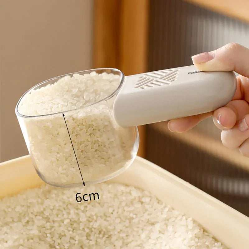 Simplify your cooking with this 2-in-1 scoop rice spoon, designed for measuring and scooping rice, grains, cereals, and more, with an insect-proof feature to keep food safe.