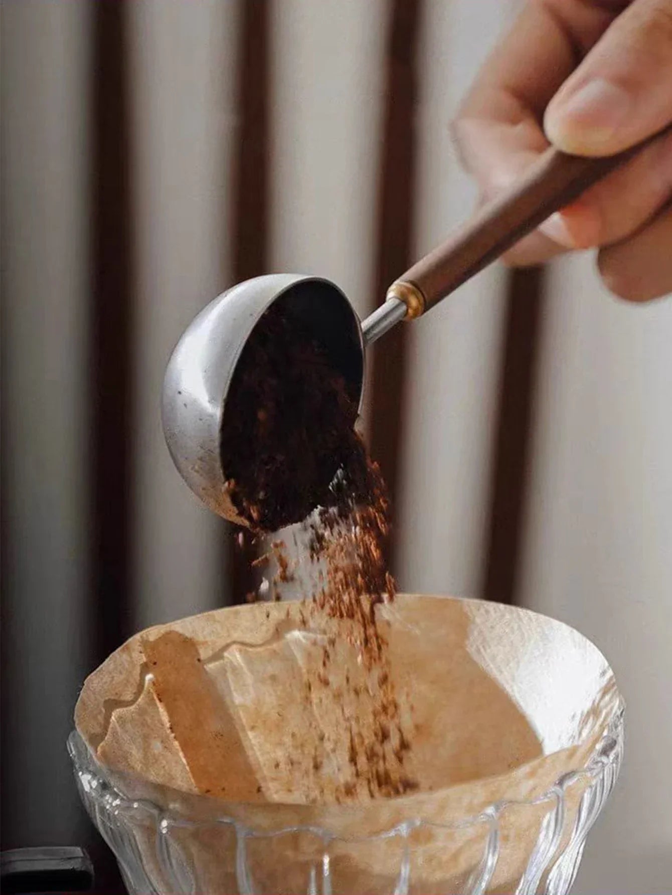 This Coffee Spoon features a vintage walnut wood handle with a stainless steel scoop, perfect for measuring coffee, tea, and seasoning. A stylish and functional addition to your kitchen tools.