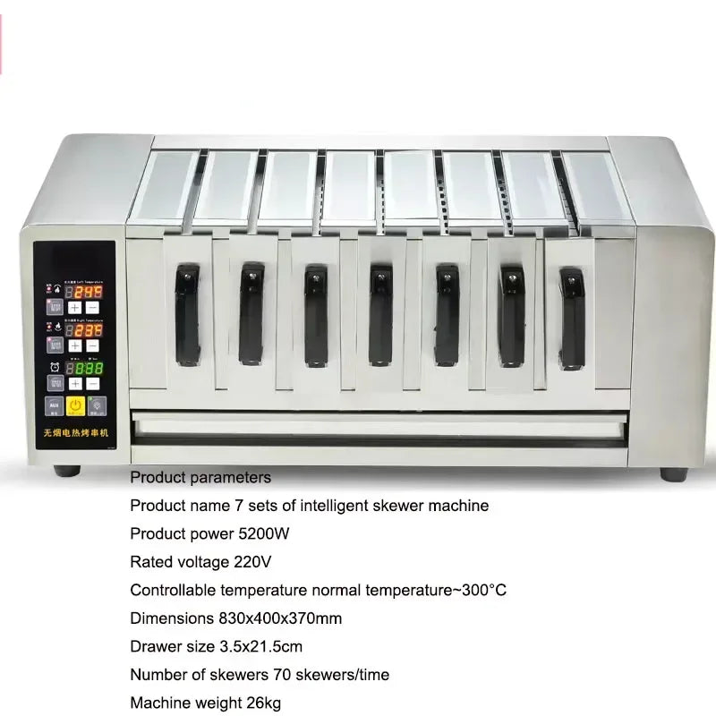 Enjoy the perfect BBQ experience indoors with the Commercial Smokeless BBQ Grill — featuring intelligent temperature control, a 2600W heating system, and rotating skewers for even cooking.
