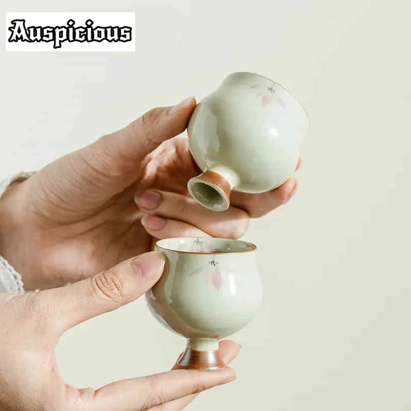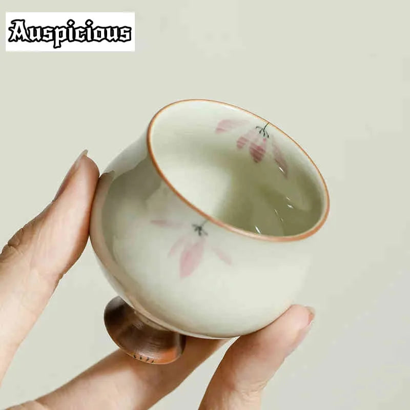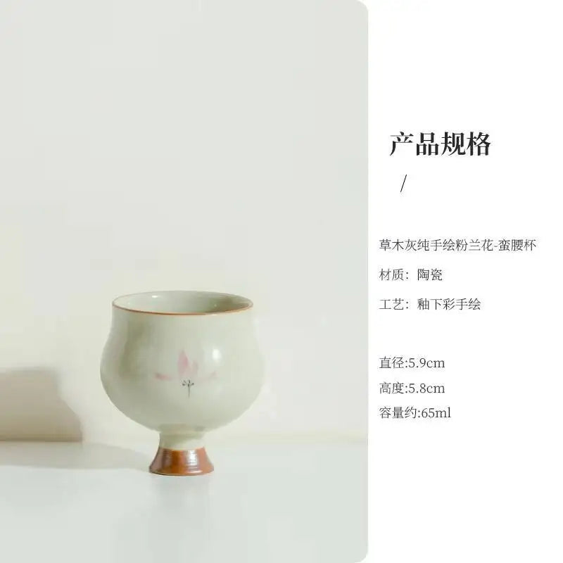 Add elegance to your tea ritual with this set of 2 retro-style teacups. Crafted from ceramic with a hand-painted pink orchid design, these high-foot cups bring a touch of sophistication to your Kung Fu tea experience.