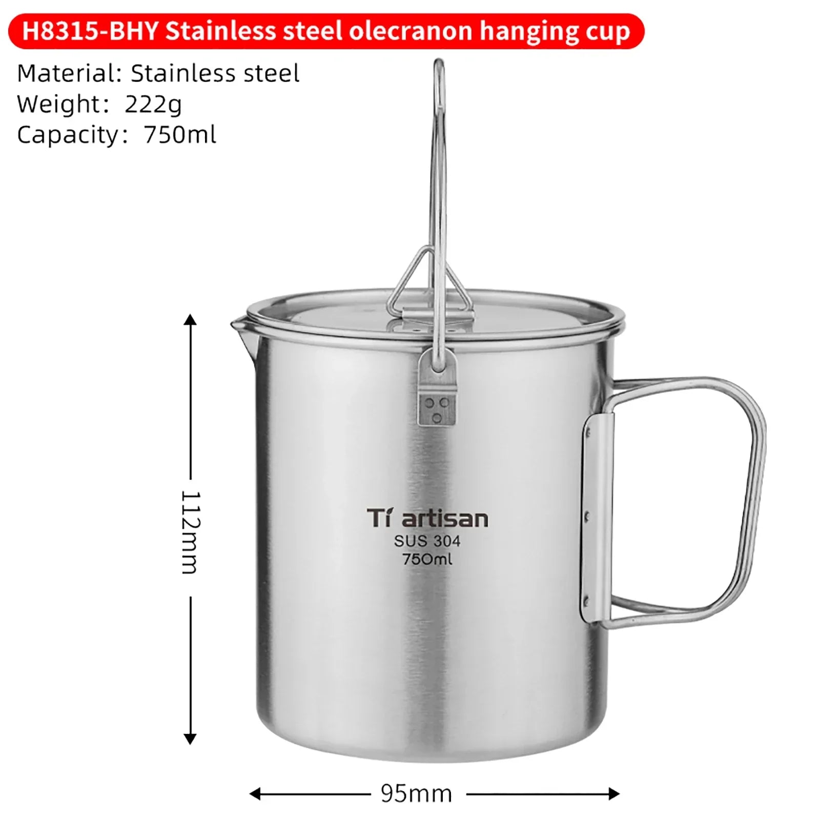 Take your outdoor adventures to the next level with the Tiartisan 750ml Stainless Steel Hanging Pot — the perfect companion for your camping and hiking needs!
