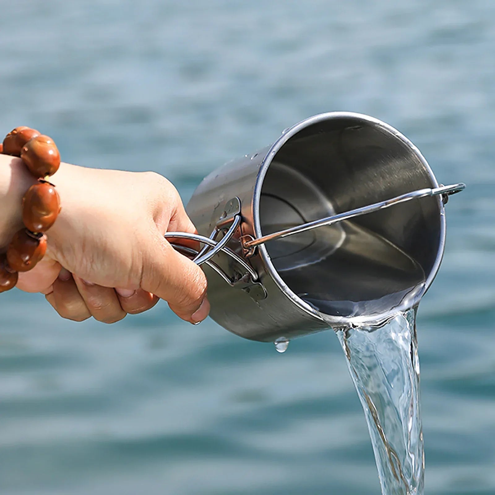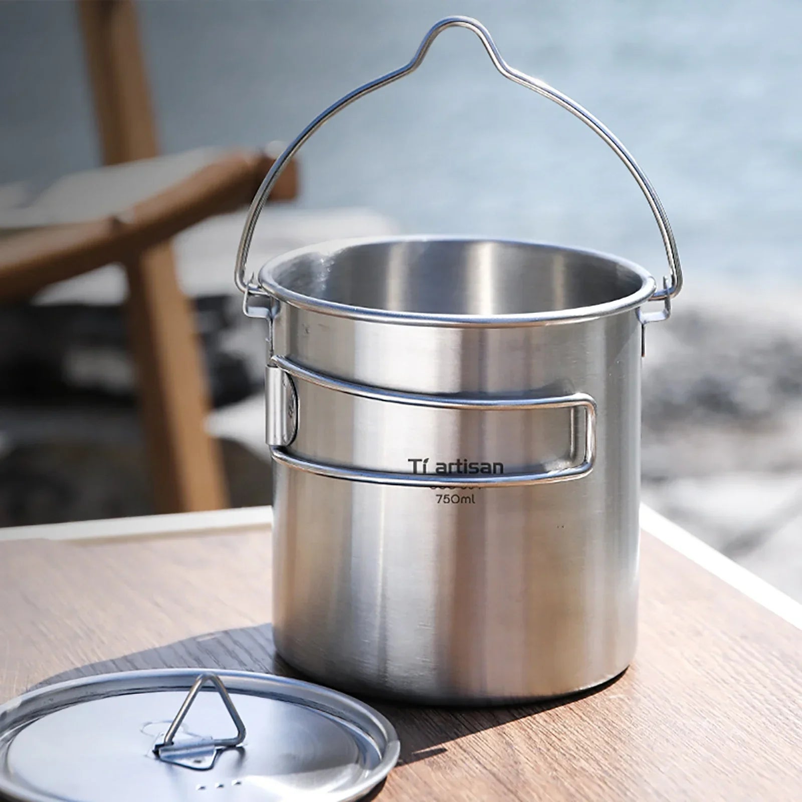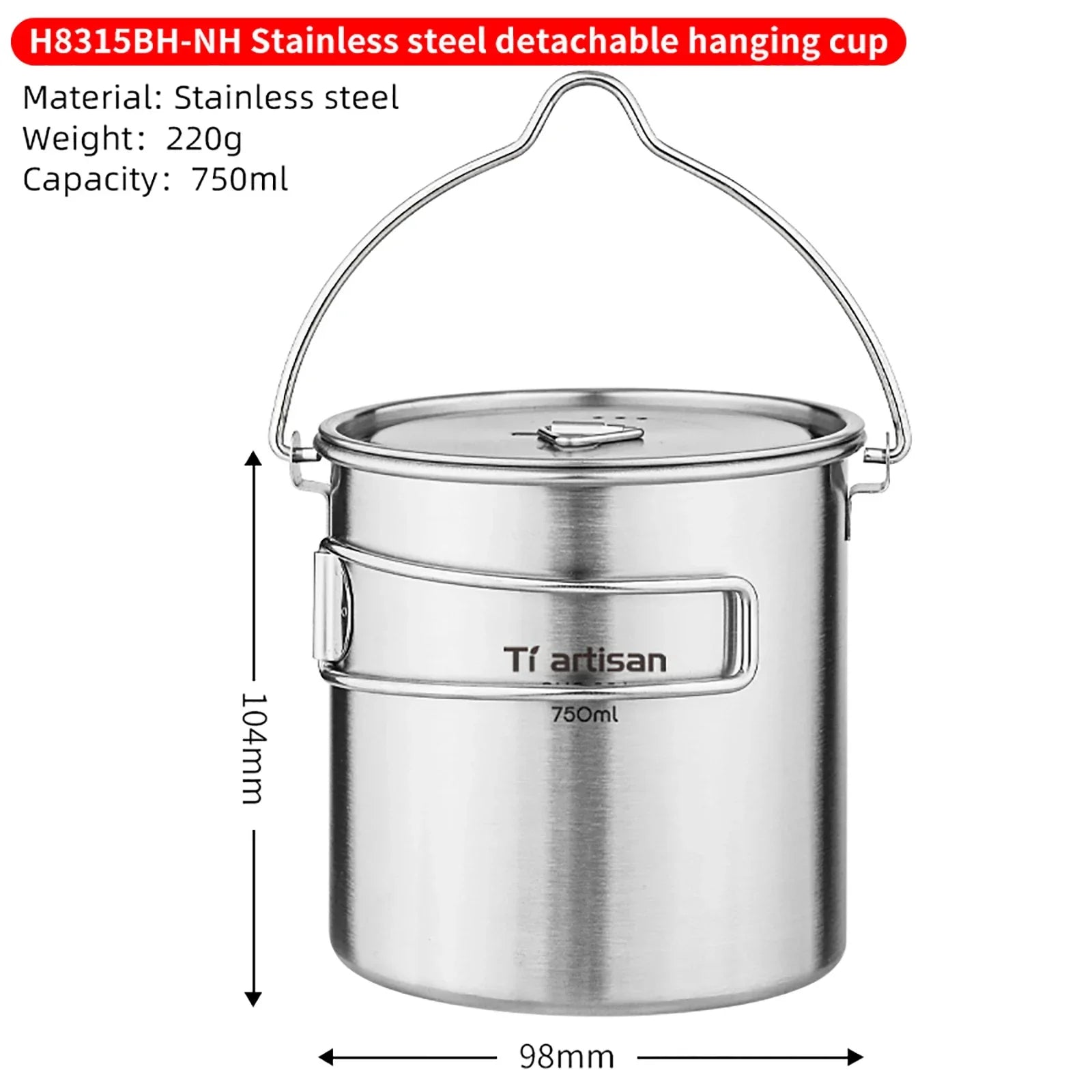 This 750ml Tiartisan Stainless Steel Hanging Pot is perfect for outdoor picnics, camping, and hiking. With a portable, foldable handle, it serves as a tea pot, coffee mug, or water cup, making it an essential companion for any adventure.
