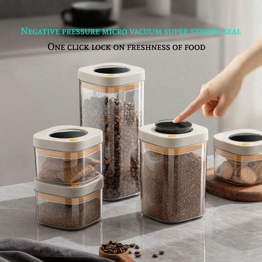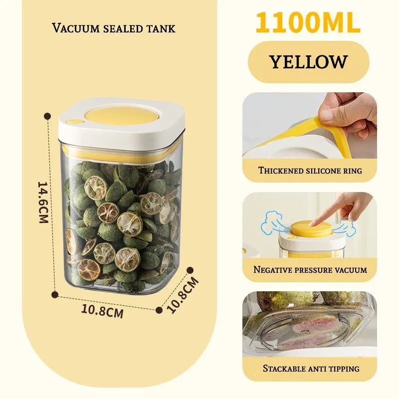 Keep your food fresh and organized with the Vacuum Sealer Food Storage Containers — featuring a one-touch press button for airtight sealing, available in 3 sizes and made with BPA-free PET and silicone seal for long-lasting freshness.